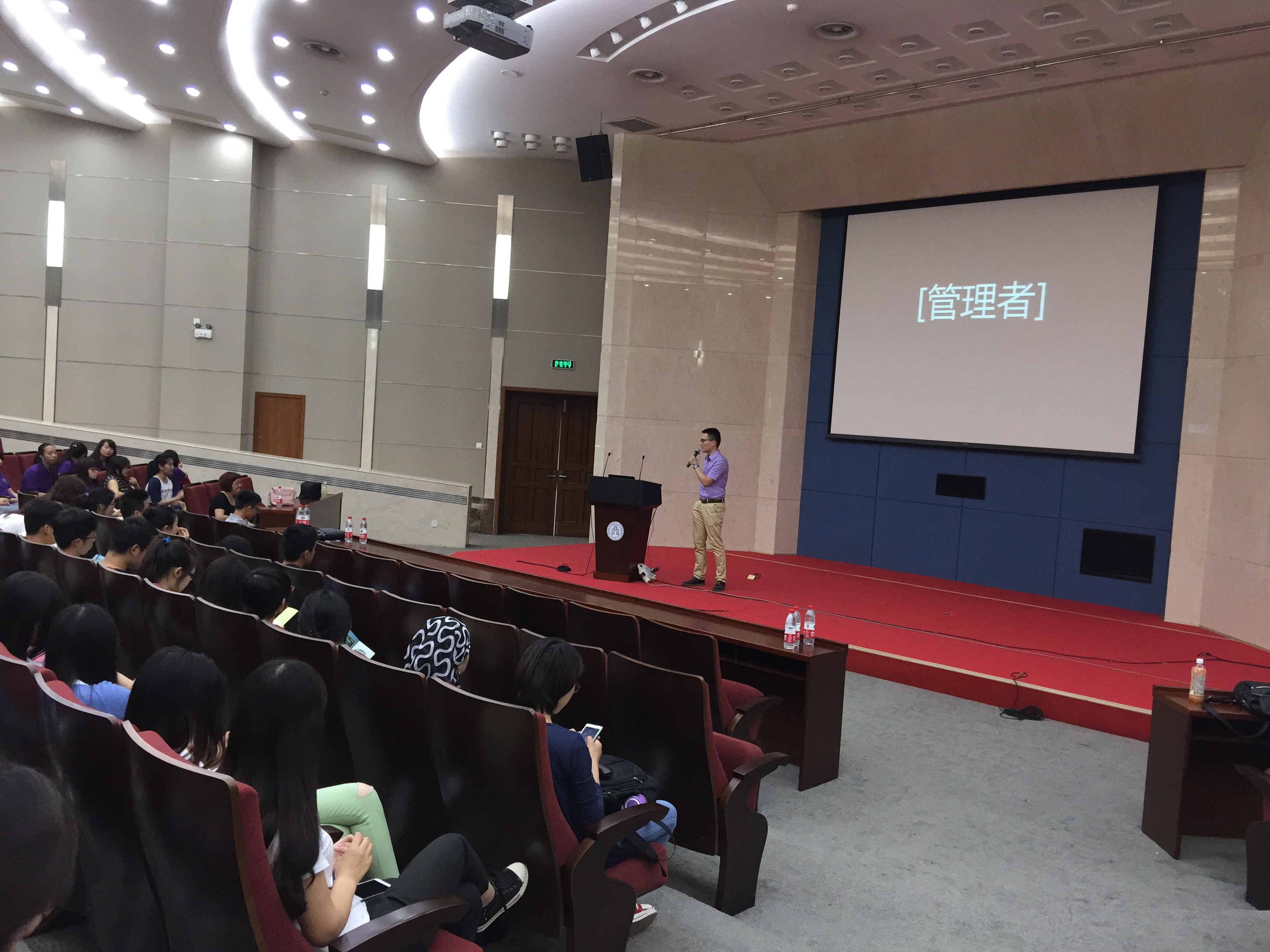 汤明磊先生从对“管理者”定义的探讨开始,讲述自己大学时期的经历与经验,介绍了关于“闯先生”团队做为一个孵化器的运营模式。随后闯先生团队成员汪罕先生向大家详细介绍了“闯吧”、“爱闯会”等情况,分享了自己创业初期的一些经验和体会,并表示“闯吧”将于今年7月份进驻公司。最后的互动环节将活动推向了高潮,同学们踊跃提问,现场氛围活跃。