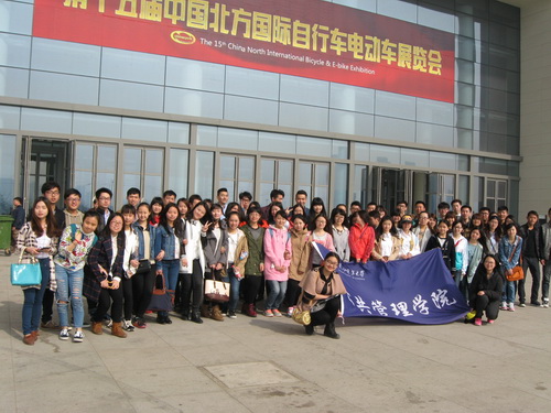 实习出发前,指导教师向同学们讲解了实习纪律、实习注意事项,并具体布置了实习活动的安排。在参观过程中,同学们首先认真观看了会展中心场馆的独特布局与设计图,从所学专业视角对场馆的选址、建筑特色、内部结构及展厅设计风格等进行解读;其次对第十五届中国北方国际自行车电动车展览会的主题特色、展品范围、展位划分、展台搭建特点及展会期间的相关活动安排等展会的基本要素信息进行全面了解,重点围绕展览会现场服务管理的工作内容、工作岗位设置及对应能力要求与指导教师进行沟通交流。