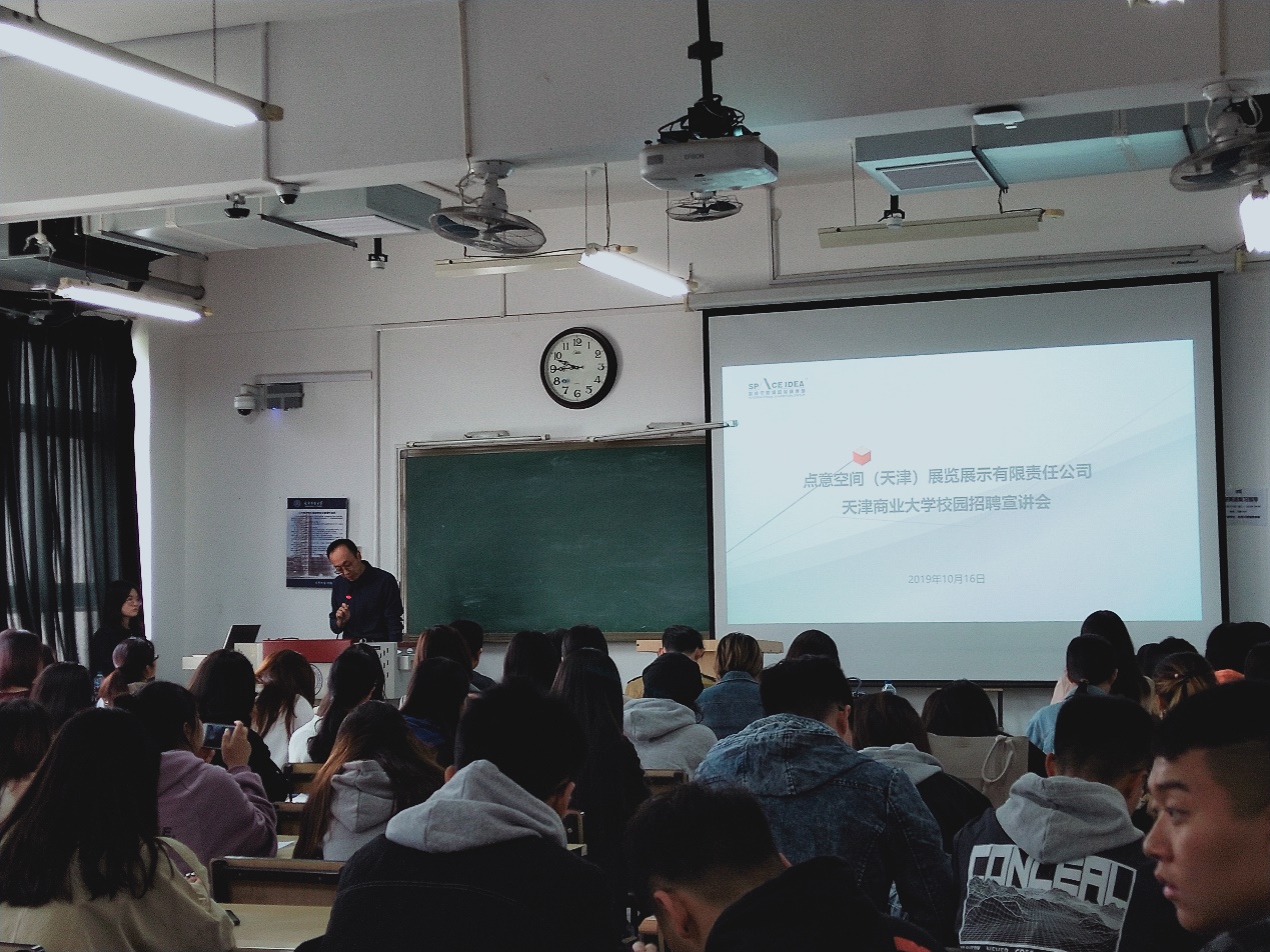 10月16日,会展经济与管理系组织点意空间(天津)展览展示有限公司来校为第四届世界智能大会和2020夏季达沃斯论坛举办招募实习生宣讲会,宣讲会出席人员有滨海新区商务和投资促进局会展经济室领导,点意空间天津公司刘川总经理及相关负责人,bv伟德国际1946官网副经理杨琪副教授,会展系系主任严敏副教授和会展系2016级和2017级同学。会后,同学们踊跃报名项目实习生并表示希望能深度参与世界智能大会和夏季达沃斯论坛的筹备运营工作。