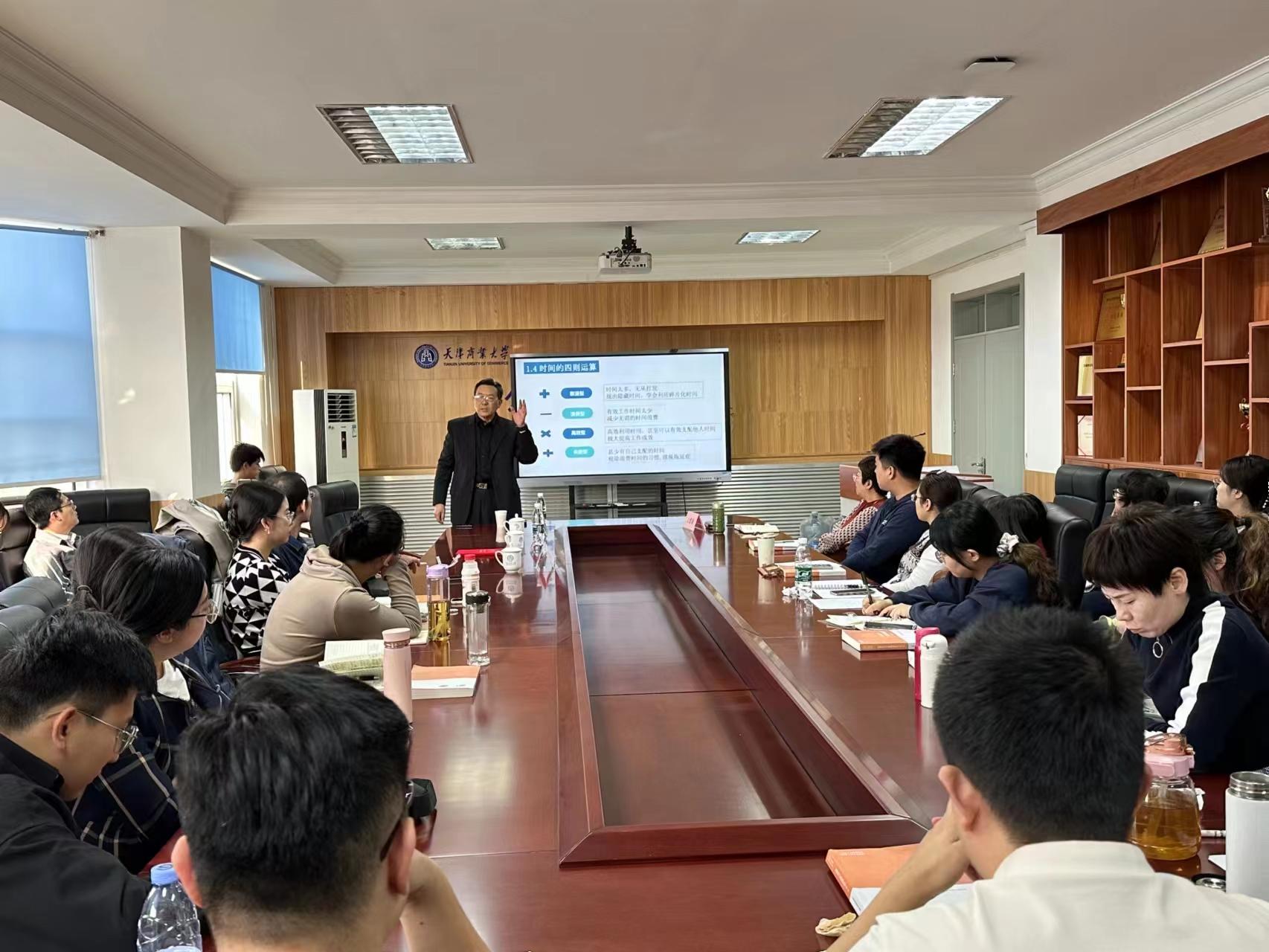 为了进一步增强公司MPA学员的时间管理意识,充分提高MPA学员的工作和学习效率,10月22日下午,bv伟德国际1946官网特邀天津市行政管理学会常务副会长兼秘书长、原天津市公务员能力建设中心主任张霁星研究员做客“天商公管大讲堂”,为公司师生作题为《科学的时间管理与提高工作效率》的专题讲座。bv伟德国际1946官网经理李增田教授、部分教师和MPA学员代表40余人参加讲座。讲座由副经理王雪丽教授主持。